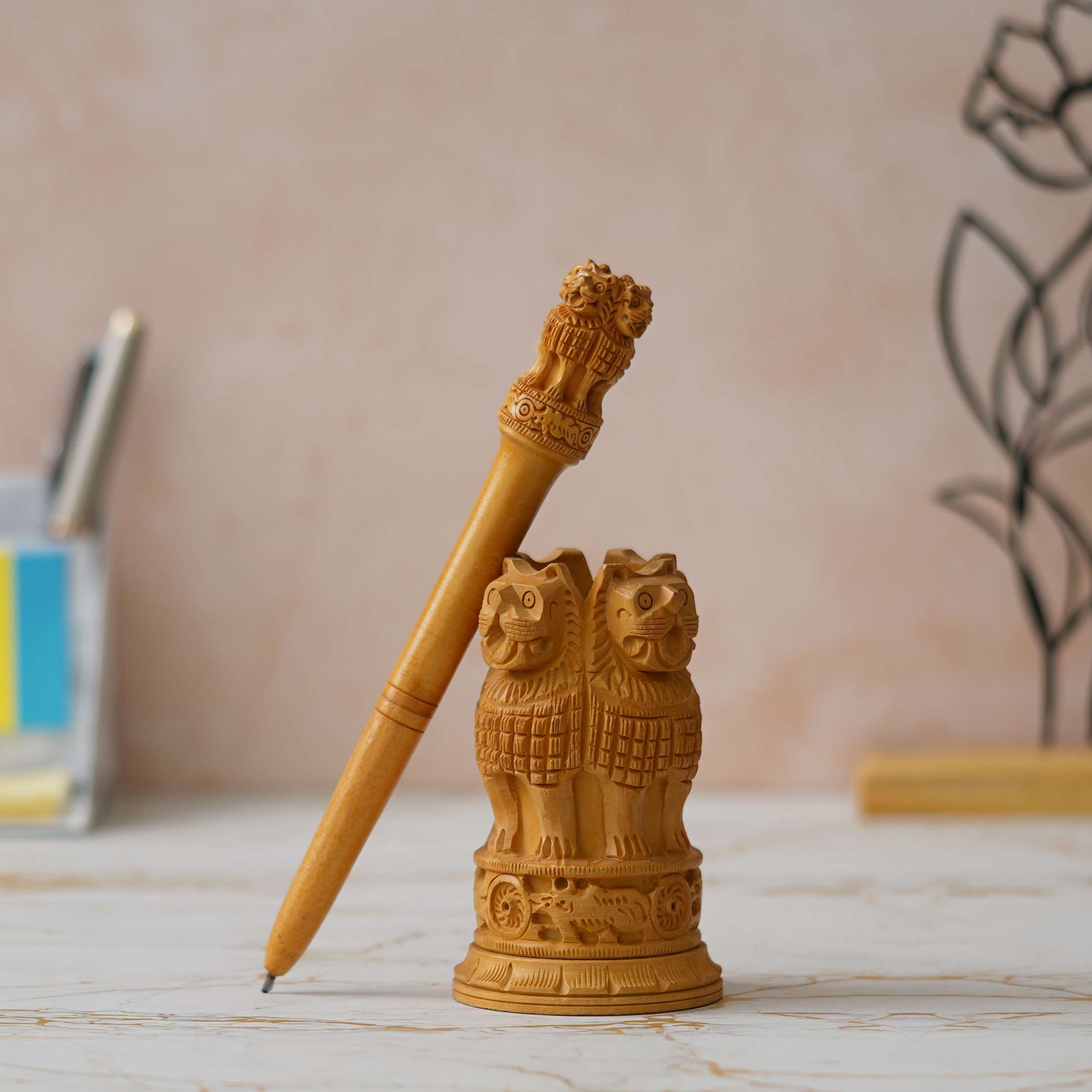 Add a touch of Indian heritage to your home decor with our handcrafted wooden Ashoka Pillar replica. Inspired by the iconic Ashoka Pillars found throughout India, this meticulously crafted piece captures the elegance and grandeur of ancient architecture. Made from high-quality wood and finished with intricate detailing, this replica is a stunning addition to any living space or office. Whether displayed on a mantel, shelf, or desk, it serves as a reminder of India’s rich history and cultural significance. Bring a piece of timeless elegance into your home with this exquisite wooden Ashoka Pillar replica